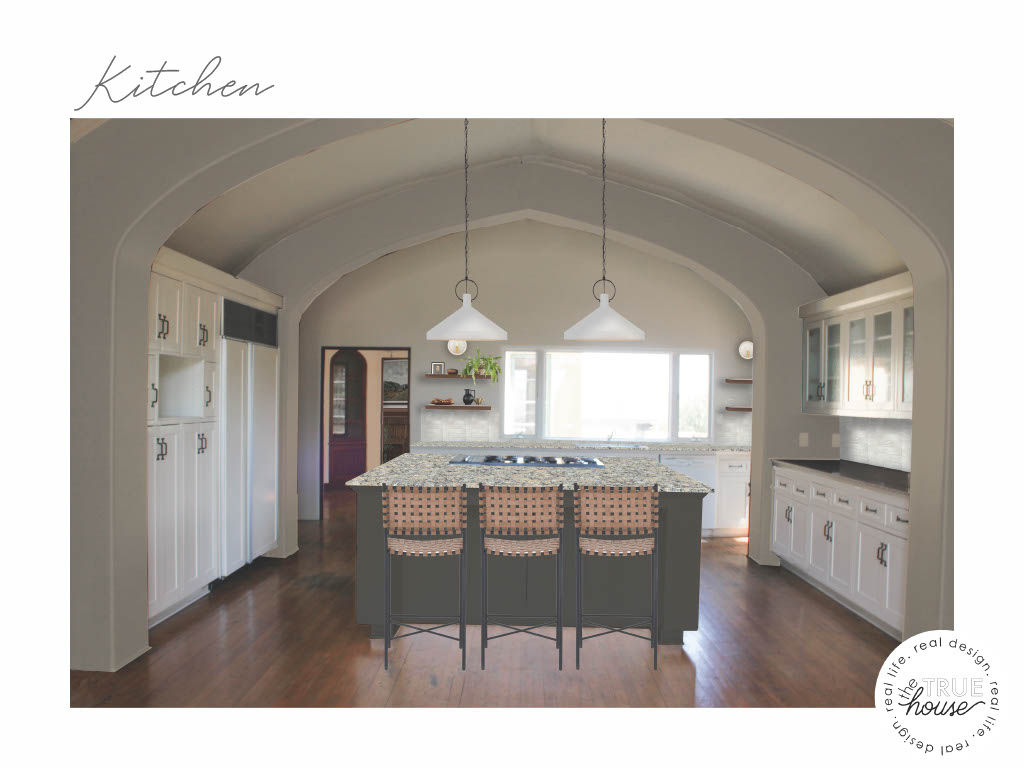 A comprehensive full home remodeling project in San Diego that showcases a fusion of European styles, including French, Mediterranean, and Spanish influences. The remodel encompasses the living room, two medium-sized guest bathrooms, one master bathroom remodeling, a kitchen remodeling, a kitchenette, a kitchen lounge, a dining room, a master bedroom, and a living room. The project includes three galleries: the top gallery displays the completed project, the middle gallery features floor plans for each area of the home, and the bottom gallery presents renders of each space, inspired by the floor plans.